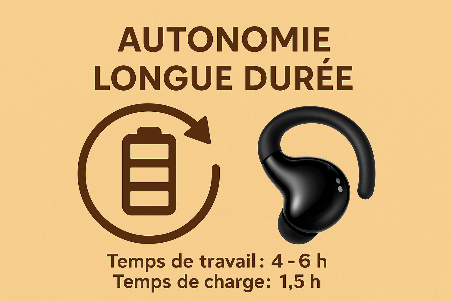 ✅ Autonomie fiable : jusqu’à 6 heures d’écoute, avec une recharge rapide en 1h30.